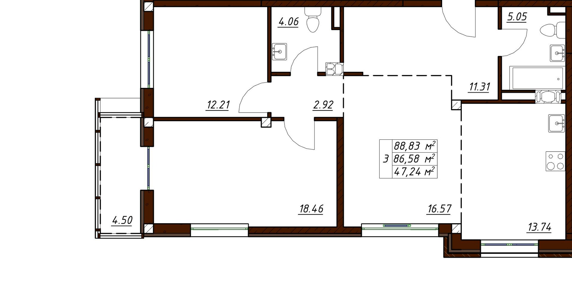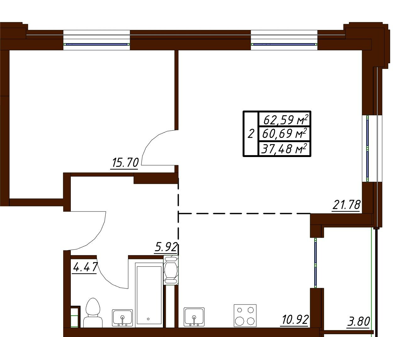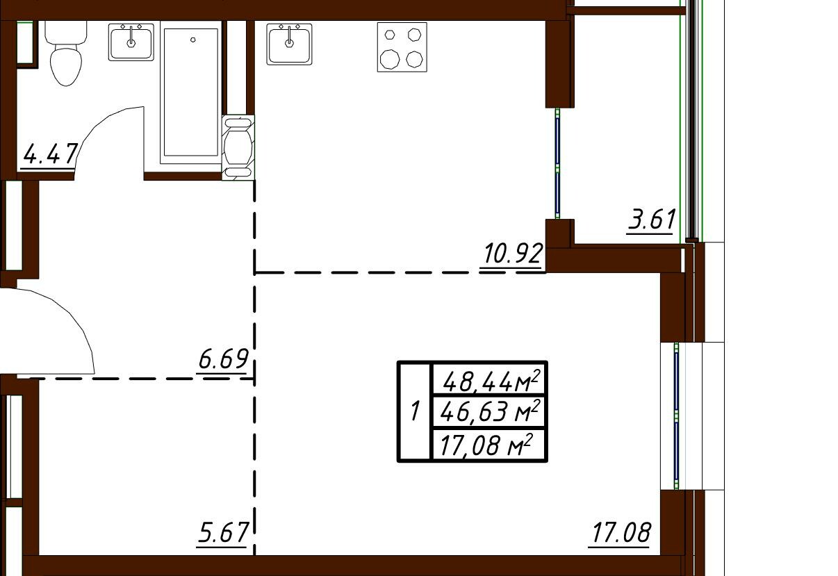 Покажем разные варианты 1-, 2- и 3-комнатных квартир. Сразу видите метраж, стоимость и саму планировку.